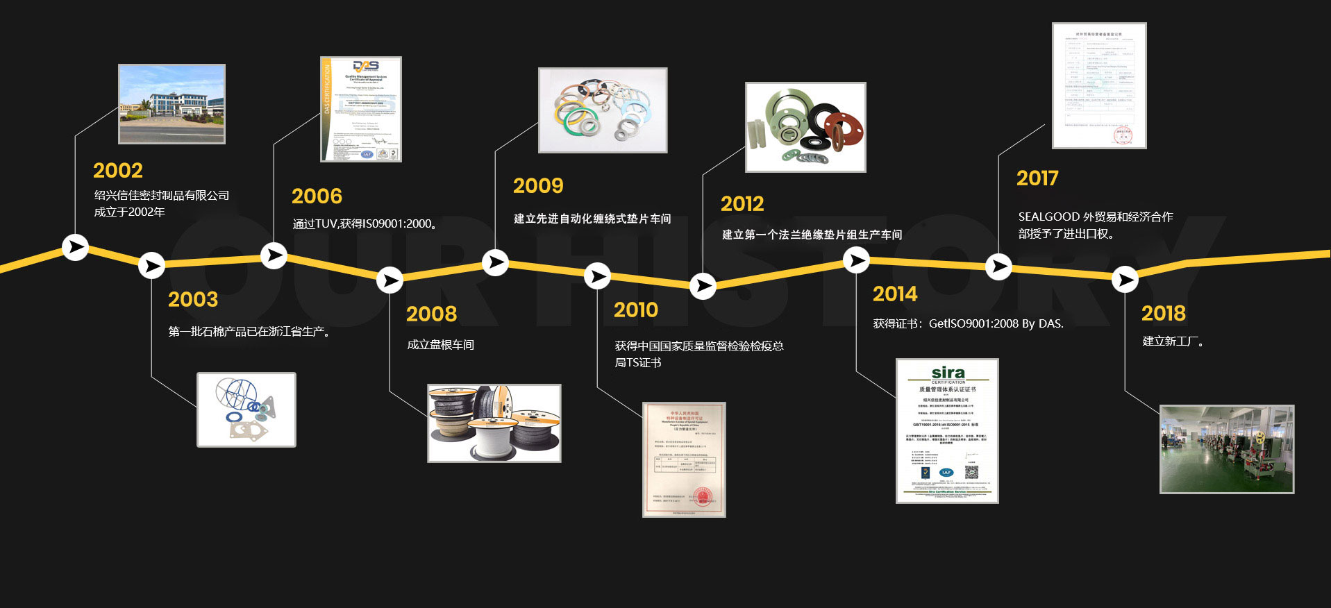 紹興信佳密封制品有限公司成立于2002年,長期致力于石化、化工、天然氣、電力、船舶等行業各類密封制品的設計、生產、銷售及技術服務咨詢。公司于2016年研發出國外壟斷的防火法蘭絕緣組,通過API 6FB防火認證并申請專利;2020年引進國外的高端密封材料,研制出丙烷脫氫裝置上使用的高溫蛭石墊片。此墊片在750℃高溫的工況下仍能安全運行,顯示出極高的可靠性和熱穩定性能。